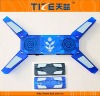 1.unique design of motion,hundreds of ways to change,can stretch out and draw back 2.stereo sound to make a pleasing sound(two speakers) 3.super thin transparent illuminant fans,heavy winds,effective in cooling(one fan) 4.can charge for various mobile phones 5.with 2.0 USB HUB 6.used for laptops of various size. blue LED flashing while working Package: Blister Card Means: 43*41*27CM Qty: 40pcs N.W: 8.6KG G.W: 11.5KG